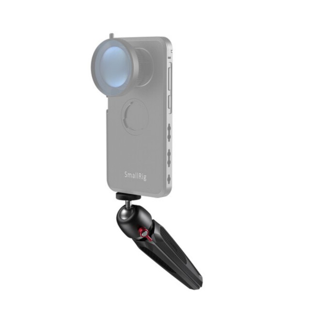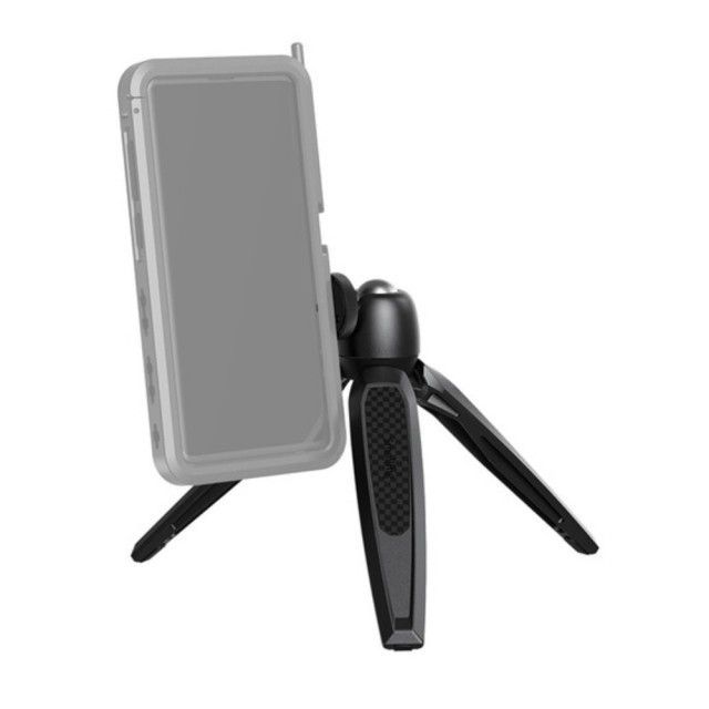 Das Mini-Stativ hat eine 1/4"-20 Befestigungsschraube für die Kamera, eine Arbeitshöhe von 5,9", eine Tragfähigkeit von 10 kg und verfügt über einen verstellbaren Kugelkopf, der sich von -40 bis 40° nach vorne und von -90 bis 40° zur Seite neigen und um 360° drehen lässt. Der mitgelieferte Zubehörsockel wird mit einem Sockeladapter an der Kamera befestigt und verlängert den Sockel auf die linke Seite der Kamera, so dass das Zubehör das schwenkbare Display der Kamera nicht beeinträchtigt.