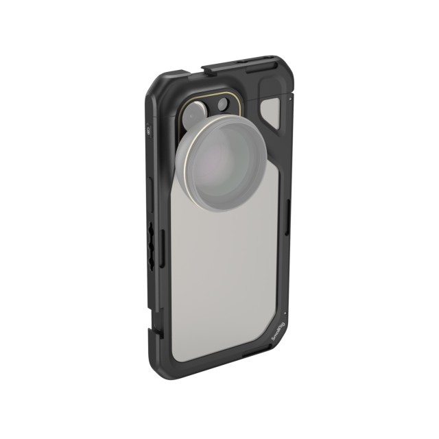 SmallRig Mobile Video Cage für iPhone 15 Pro Max 4391B ist ein multifunktionaler Handy-Käfig, der speziell für das iPhone 15 Pro Max entwickelt wurde, um hochwertige Videoaufnahmen, Live-Streaming und Vlogs zu realisieren. Der kompakte und formschlüssige Käfig wiegt nur 116 g. Er verfügt über 1/4"-20-Gewindebohrungen und kalte Schuhe zur Befestigung von Handgriff, Stativ, Mikrofon, LED-Videolicht usw., was durch ein brandneues Schnellverschluss-Ökosystem noch einfacher und schneller geht. Auf beiden Seiten befinden sich Riemenlöcher für Riemen mit einem Durchmesser von weniger als 2 mm. Sie ermöglicht die Montage eines M-Mount-Objektivs oder, durch den Austausch einer Rückplatte, eines Objektivs mit 17mm / 37mm-Gewinde, Moment T-Serie. Sie ist dezent ausgehöhlt, um vollen Zugang zu allen Tasten, Anschlüssen, dem Radar- und Ultraweitwinkelobjektiv sowie dem drahtlosen MagSafe-Ladegerät zu ermöglichen. Das einfach zu bedienende Schnellverriegelungs- und -entriegelungsdesign ist sicherer und stabiler und verhindert ein versehentliches Entriegeln aufgrund einer falschen Berührung. Der Ganzmetallkäfig verfügt über integrierte Pads, um mögliche Stöße und Kratzer zu vermeiden. Das Anbringen dieses Käfigs beeinträchtigt nicht Ihre Fähigkeit, horizontale oder vertikale Fotos zu machen.