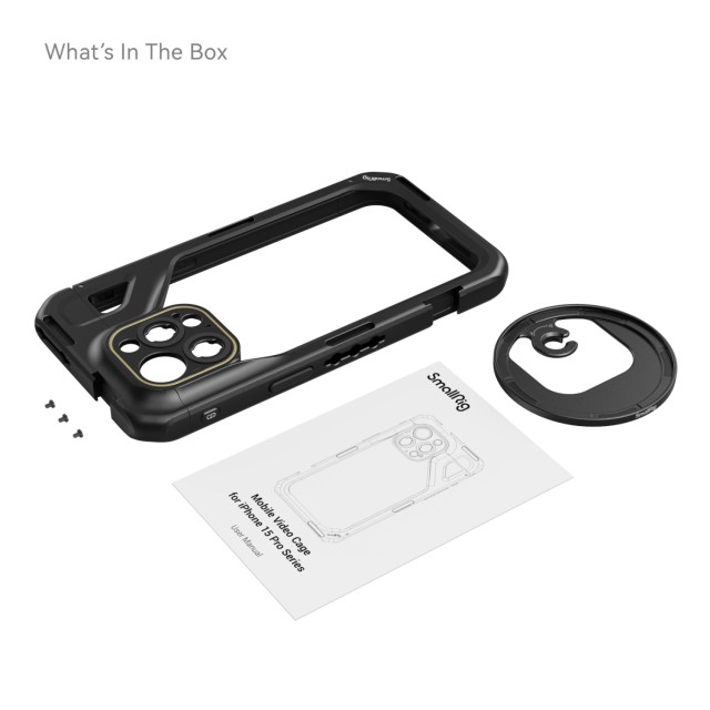 SmallRig Mobile Video Cage für iPhone 15 Pro Max 4391B ist ein multifunktionaler Handy-Käfig, der speziell für das iPhone 15 Pro Max entwickelt wurde, um hochwertige Videoaufnahmen, Live-Streaming und Vlogs zu realisieren. Der kompakte und formschlüssige Käfig wiegt nur 116 g. Sie verfügt über 1/4"-20-Gewindelöcher und Kaltstutzen zur Befestigung von Handgriff, Stativ, Mikrofon, LED-Videolicht usw., was durch ein brandneues Schnellverschluss-Ökosystem noch einfacher und schneller geht.