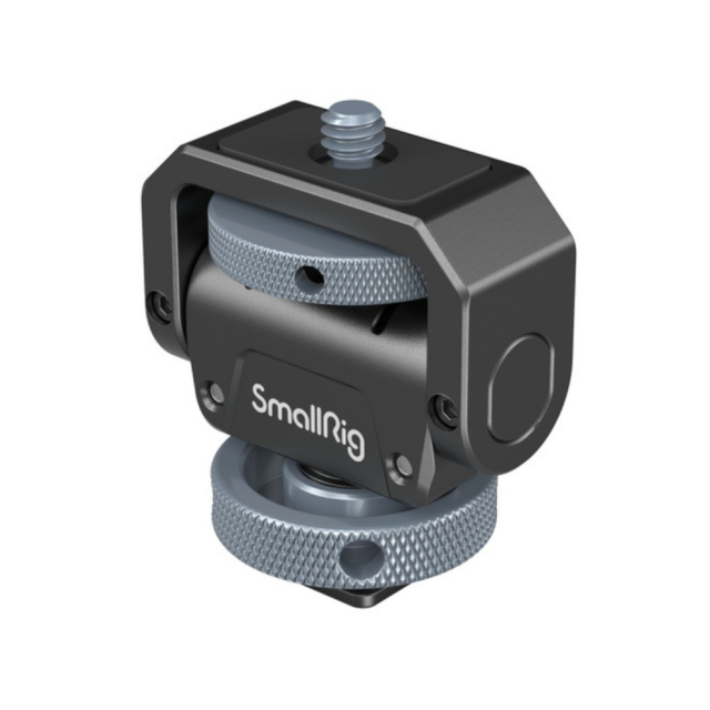 SmallRig Monitor Mount Lite mit Cold Shoe 3809 ist für die Befestigung eines Monitors vorgesehen. Der untere Kaltschuh passt auf den Blitzschuh der Kamera oder den Kaltschuh des Handgriffs; die obere 1/4"-20 Schraube dient zur Befestigung von Monitor, Mikrofon, Licht usw. Die Halterung ist um 360° schwenkbar und um 180° neigbar, wobei die Festigkeit mit einem Schraubenschlüssel eingestellt werden kann. Die 1/4"-20 Gewindebohrung an der Unterseite ermöglicht die Befestigung des Magic Arms 2070, des Kugelkopfs 1135 usw.; die obere und untere Rändelschraube hat Löcher für Schraubenschlüssel, um sie leicht zu demontieren. Außerdem ist die Oberseite mit einem schützenden Gummipolster versehen, das für mehr Reibung sorgt und ein Durchbiegen verhindert.