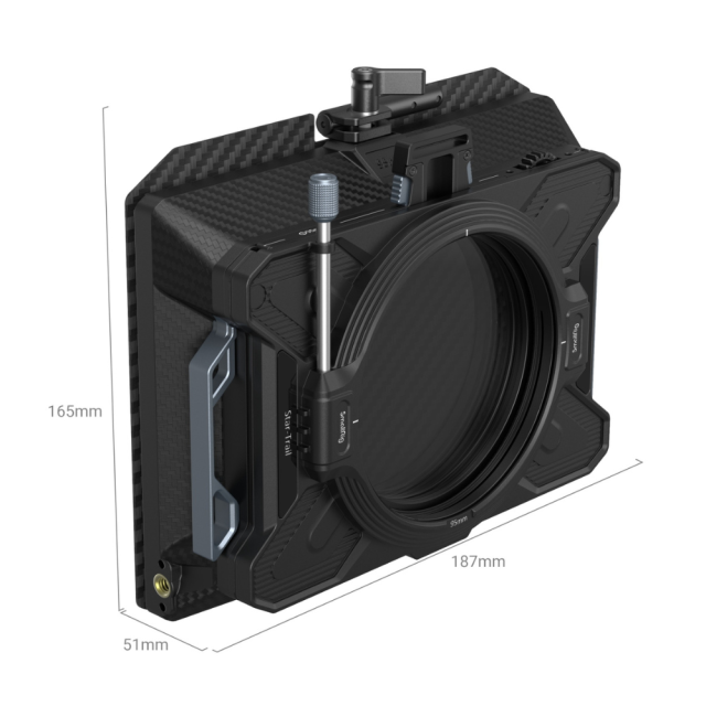 Ideal für die Verwendung mit Objektiven mit einer Brennweite von 35 mm und mehr. Zu den weiteren Zubehörteilen gehören eine Sonnenblende mit magnetischer Befestigung und Schnellverschluss sowie eine obere Flagge aus Kohlefaser, die sich um 180° öffnen lässt. Um stärkere Blendung zu vermeiden, erwerben Sie das Set 3647 Seitenblenden (95 mm). Die Doppelstangenstütze des Modells 3652 stützt und schützt das Objektiv. Unsere Star-Trail-Matrizen verwenden verschiedene leichtere Magnesiumlegierungen und Kohlefasern, um eine leichte Aufnahmelösung zu bieten.