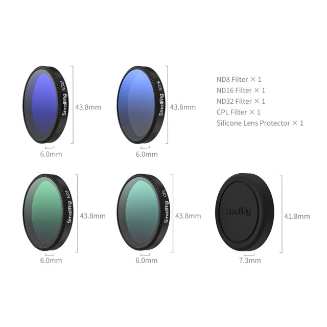 Das SmallRig ND-Filter-Kit für DJI Osmo Action 6 5895 wurde speziell für die DJI Osmo Action 6 entwickelt. Dank fortschrittlicher Mehrschicht-Beschichtungstechnologie erzielt dieses Filter-Kit eine präzise Lichtreduzierung über alle Wellenlängen hinweg und sorgt gleichzeitig für eine außergewöhnliche Farbgenauigkeit. Das umfassende Set enthält ND8-, ND16-, ND32- und CPL-Filter, die eine ideale Belichtungssteuerung für verschiedene Aufnahmesituationen bieten und für sattere, lebendigere Bilder sorgen.
