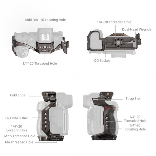 Der SmallRig "Night Eagle"-Käfig für Nikon Z5, Z6, Z7, Z6 II, Z7 II und Z5 II ist ein hochwertiger, formschlüssiger Aluminiumkäfig, der klassische Ästhetik mit moderner Funktionalität verbindet. Dieser Käfig wurde passend zum kultigen Look der Nikon Z-Serie entworfen und verfügt über eine klassische Lederausstattung mit goldenen und roten Akzenten. Das 3-Punkt-Verschlusssystem sorgt für einen stabilen, verdrehsicheren Sitz und bietet gleichzeitig vollen Zugriff auf die Bedienelemente, Anschlüsse und den Akku Ihrer Kamera. Der Käfig verfügt über eine seitliche NATO-Schiene und eine abnehmbare Kaltschuhhalterung zur flexiblen Befestigung von Monitoren, Mikrofonen und Armen. Mit mehreren 1/4"-20- und 3/8"-16-Gewinden im ARRI-Stil und einem Arca-Sockel unterstützt dieser Käfig eine schnelle Stativbefestigung und eine breite Kompatibilität mit Zubehör - ideal für Filmemacher und Produzenten von Inhalten, die Form und Funktion suchen.