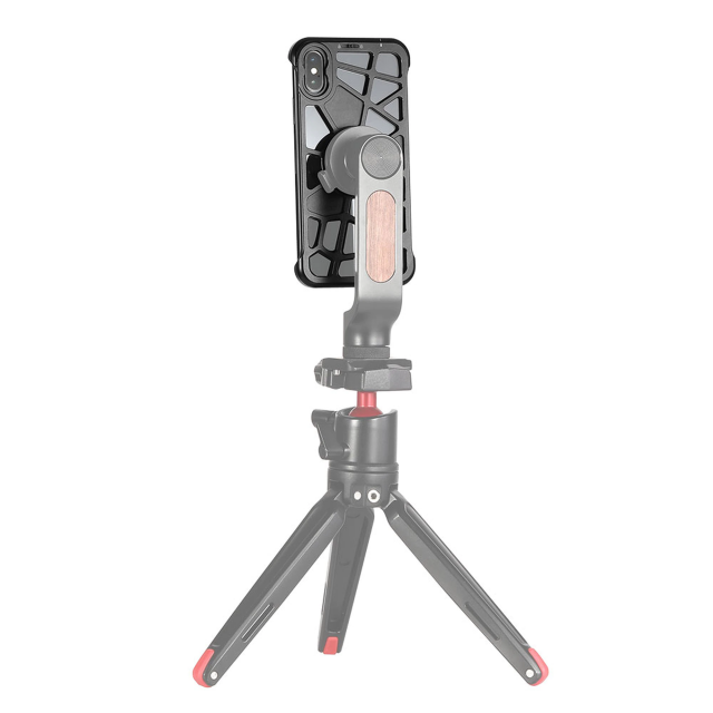 SmallRig Pocket mobiler Käfig für iPhone X/XS CPA2204 wurde entwickelt, um Ihr iPhone zu schützen und eine einheitliche Montagelösung für den Anschluss von anderem Zubehör für mobile Foto- und Videoaufnahmen, Live-Streaming, Interviews, Vlogging usw. zu bieten. Es verfügt über einen Schalter auf der Oberseite, um eine schnelle Montage und Demontage des Telefons zu gewährleisten. Der Objektivanschluss mit 17-mm-Gewinde und ein zusätzlicher Moment-Objektivadapter bieten die Möglichkeit, entweder 17-mm-Objektive oder Moment-Objektive anzuschließen. Die eingebauten Gummipuffer dämpfen Stöße und verhindern, dass das Telefon zerkratzt. Das Spider-Web-Design zur Gewichtsreduzierung und Kühlung des Handys vermeidet die seitlichen Tasten und die Schnittstelle sowie den Antennenbereich, um das Risiko von Signalstörungen zu vermeiden. Ein speziell angefertigtes Befestigungsbajonett auf der Rückseite hilft bei der Verbindung mit dem SmallRig Mobile Phone Head BSP2380, um ein Stativ zu befestigen, und dann ein einzelnes Mikrofon über die SmallRig Cold Shoe Mount for Mobile Phone Head BUC2369 oder mehrere Zubehörteile wie ein Mikrofon, LED, Powerbank über die SmallRig Mobile Phone Extension Plate APU2381 zu befestigen. Sie verfügt außerdem über eine versteckte Öffnung für eine Handschlaufe. Der Käfig selbst ist leicht und kompakt und kann auch als Schutzhülle verwendet werden.