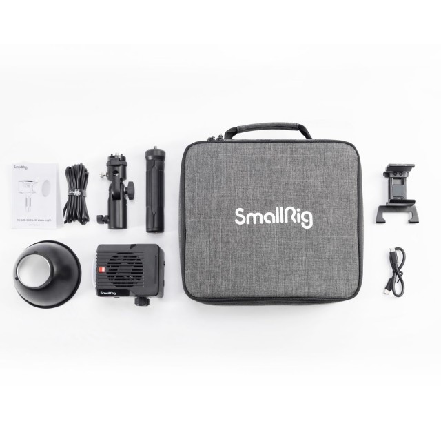 Set aus kompakten 60W Bi-color COB LED-Leuchten inklusive Zubehör. Die RC60B bietet einen Farbtemperaturbereich von 2700-6500K, CRI 97+ und TLCI 98+, Dimmbarkeit von 0-100%, interne Batterie mit bis zu 45 Minuten, das 4376 Kit enthält auch eine Klemme zur Befestigung einer Powerbank oder externen Batterie und ein 20cm USB-Kabel.