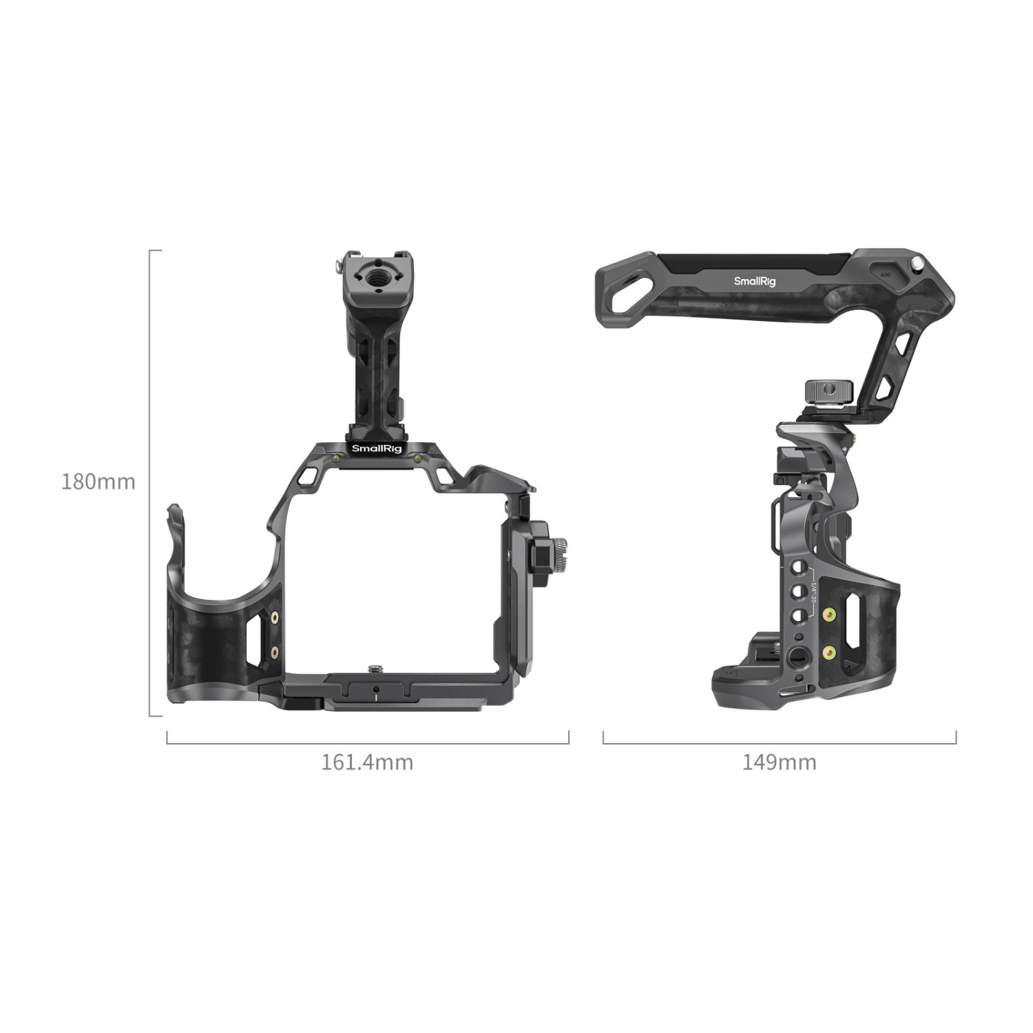 Das Set enthält einen „Rhinoceros“-Käfig, einen „Rhinoceros“-Obergriff und eine Klemme für HDMI-Kabel. Der Käfig und der Obergriff sind aus Kohlefaser gefertigt, extrem leicht und tragbar – ideal für den langfristigen Handgebrauch.