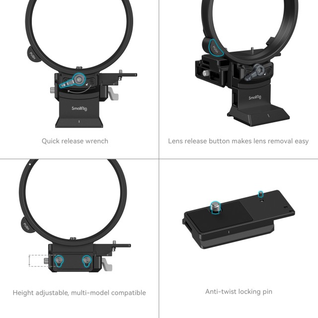 2. Modulares Design, schnell abnehmbare Objektivhalterung für bequeme Aufbewahrung und Tragbarkeit.