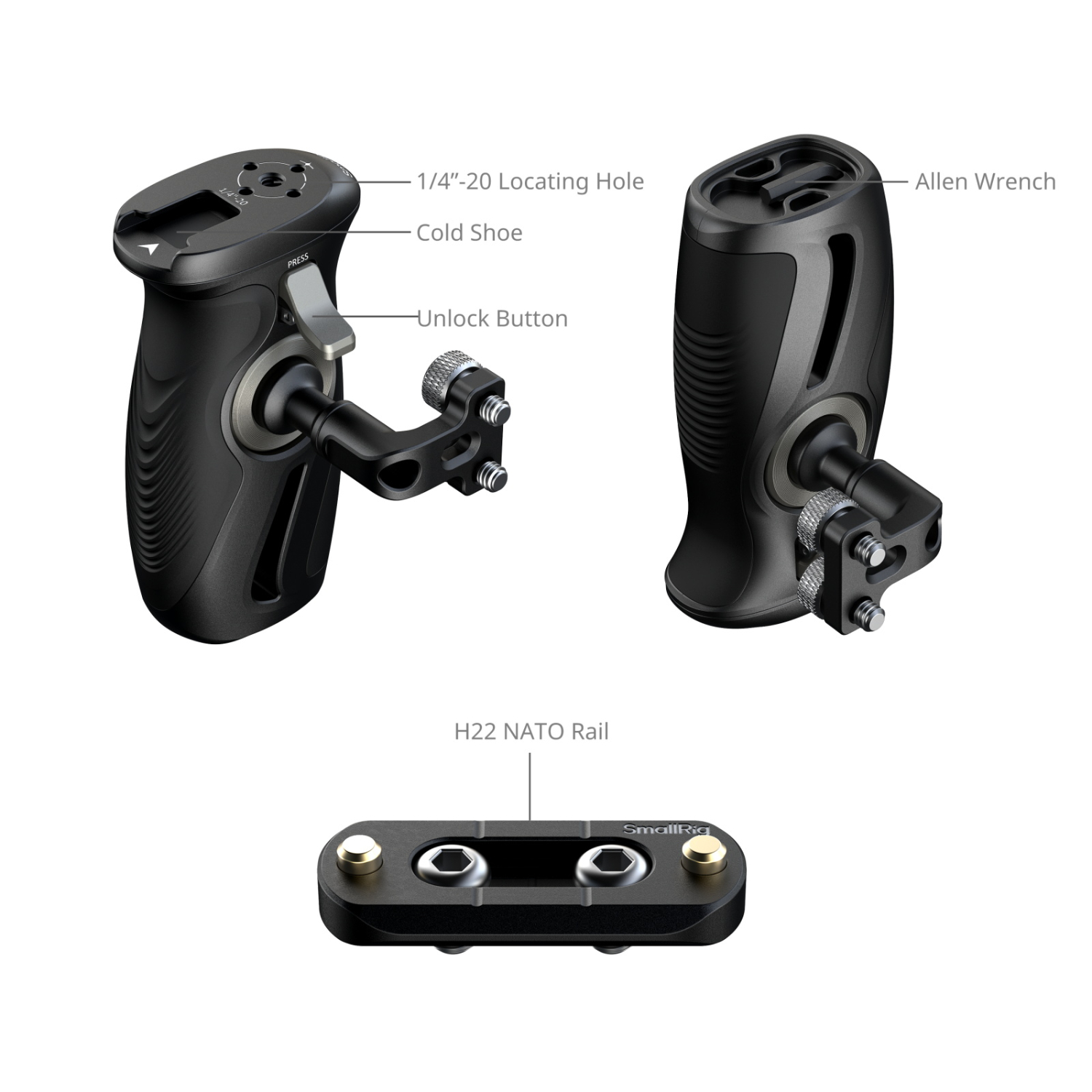 Der drehbare SmallRig-Seitengriff mit 1/4"-20-Schrauben 5194 wurde für komfortable Aufnahmen aus der Hand entwickelt.