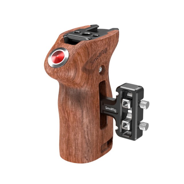 Der seitliche SmallRig-Gewindegriff des 3323 mit ferngesteuertem Start-/Stopp-Auslöser ermöglicht eine bequeme Start-/Stoppsteuerung für stabile und komfortable Aufnahmen. Der ergonomisch geformte All-in-One-Holzgriff verbessert das Halteerlebnis. Wird mit zwei 1/4"-20-Gewinden und verstellbarer Höhe sicher am Käfig befestigt. Auf der Oberseite befinden sich…