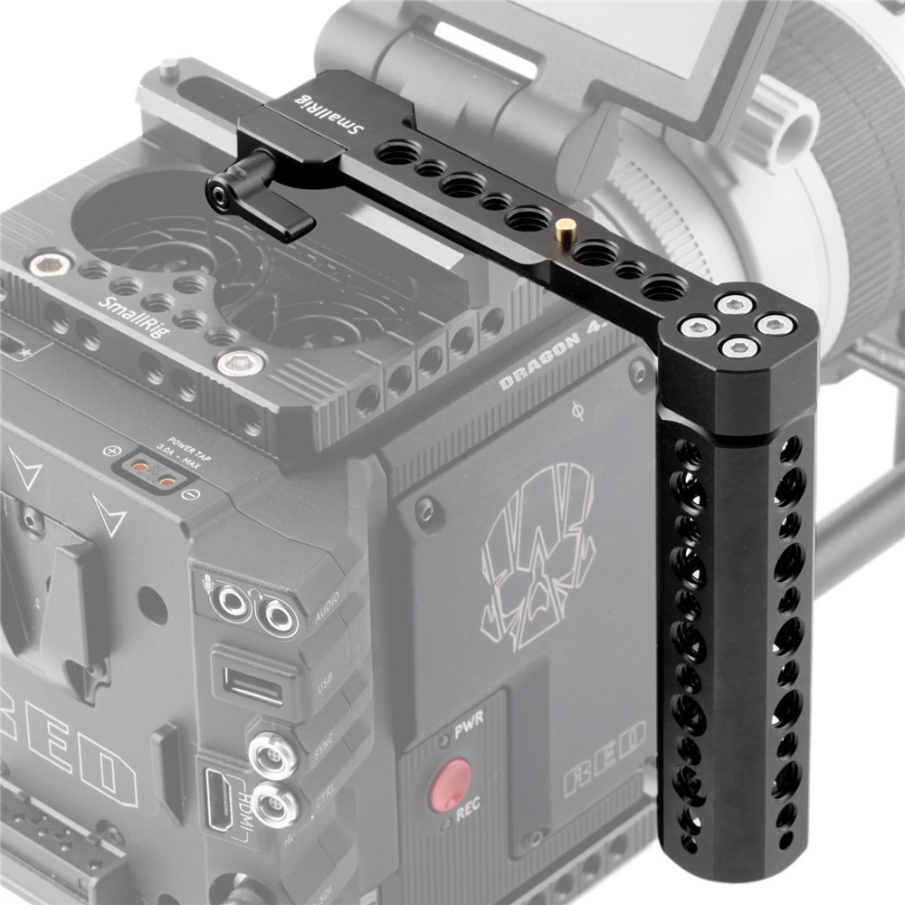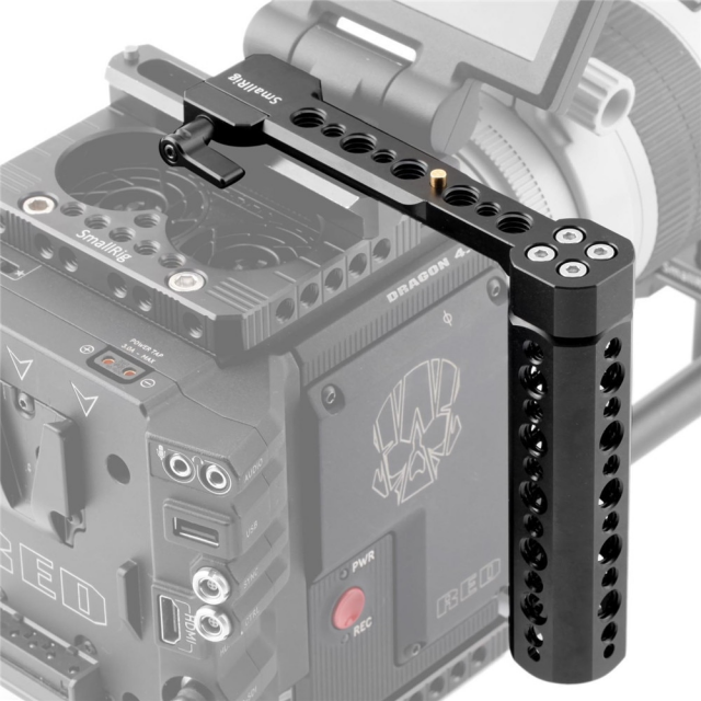 Designer: Wujun Yan SMALLRIG Side NATO Handle for DSLR 1534 wird direkt an der Oberseite des Monitor-/Kamerakäfigs befestigt oder passt zu einer anderen NATO-Schiene, um ein seitliches Halten Ihrer Kamera oder Ihres Monitors zu erreichen. Er verfügt über eine integrierte NATO-Schiene mit einem Sicherheitsstift auf der Oberseite, die es ermöglicht, alle NATO-kompatiblen Geräte, wie die SMALLRIG NATO-Klemme 1255 und die NATO-Schienenklammer mit 1/4"-Gewinde 1885, einfach und sicher zu befestigen. Dadurch wird der Zugang zur Montage von leichten Rigs, wie Monitor, LED-Licht oder Mikrofon etc. gewährleistet. Hauptmerkmale: 1. Mit einer integrierten NATO-Schiene und NATO-Klemme 2. Befestigt an NATO-kompatiblen Geräten, wie z.B. Monitor/Kamerakäfig 3. Befestigt NATO-Klemme für Monitor, LED-Licht oder Mikrofon Befestigung Kompatibilität: Alle NATO-kompatiblen Geräte Im Lieferumfang enthalten: 1 x DSLR NATO Side Handle Produktabmessungen: 140x126x45mm Nettogewicht: 164g Paketgröße: 212x145x56mm Paketgewicht: 229g Material: Aluminium-Legierung