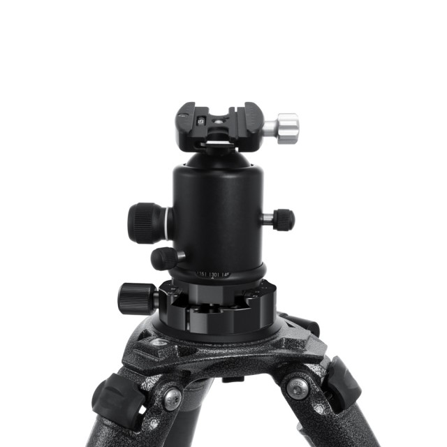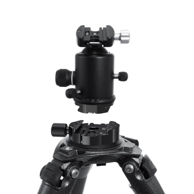 Der KDBC2469 ist für den schnellen Wechsel zwischen verschiedenen Stativköpfen konzipiert, je nach Anforderungen an Tragbarkeit, Stabilität und Belastung. Es wird mit einer Klemme mit 65 mm Durchmesser und einer Platte mit 50 mm Durchmesser geliefert. Die Arca-Swiss-Klemme kann mit einer 3/8'-16-Schraube auf das Stativ geschraubt werden, die Platte wird an der Unterseite des Kopfes befestigt. Sowohl die Klemme als auch die Platte verfügen über Sicherheitsanschläge, die ein unerwünschtes Verrutschen verhindern. Die Mittellinie an Klemme und Platte ermöglicht eine genaue Positionierung. Es ist leicht und kompakt mit einer Tragfähigkeit von bis zu 4,5 kg.