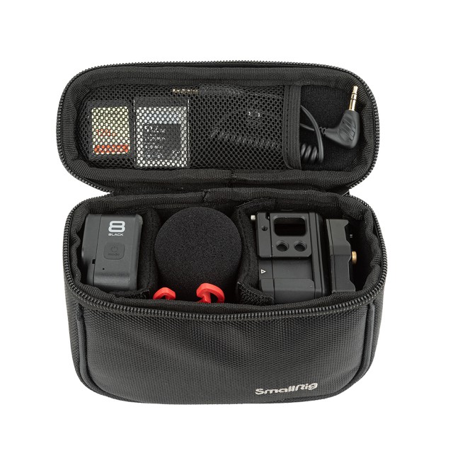 Die SmallRig Aufbewahrungstasche 3704 wurde für die schnelle und einfache Aufbewahrung von Kamerazubehör entwickelt und bietet eine Lösung für das Problem, dass kleines Zubehör leicht verloren geht und unpraktisch zu tragen ist. Die Tasche ermöglicht die Aufbewahrung von Follow Focus 3010, Action-Kameras, Kompaktkameras wie DJI Insta360 GoPro sowie Mikrofonen, LED-Leuchten und kleinen V-Port-Batterien. Sie verfügt über Innenfächer für Strom- und Kommunikationskabel und Speicherkarten sowie einen Tragegriff an der Oberseite und seitliche Schlitze für eine schnelle und einfache Aufbewahrung und ein ordentliches Erscheinungsbild.