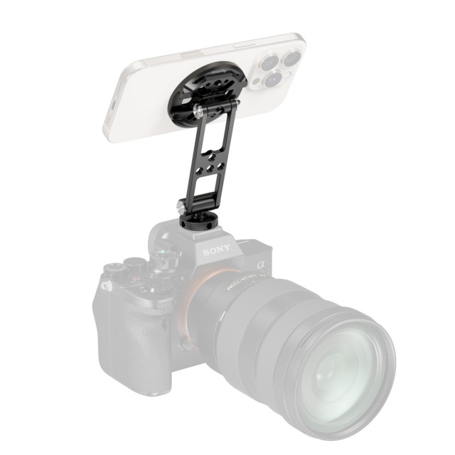 SmallRig Support mit Cold Shoe Mount (für Telefone) 5156 ist für Live-Streaming in Innenräumen, Selfies im Freien, Kameraüberwachung, mobile Fotografie und Teleprompter-Setups konzipiert. Sie ist mit MagSafe-fähigen iPhones kompatibel und ermöglicht eine mühelose Befestigung und einen schnellen Wechsel zwischen Hoch- und Querformat. Die Halterung verfügt über zwei drehbare Achsen für flexible Winkeleinstellungen und mehrere Standard-Gewindebohrungen in der Mitte für die Befestigung von Powerbank-Haltern.
