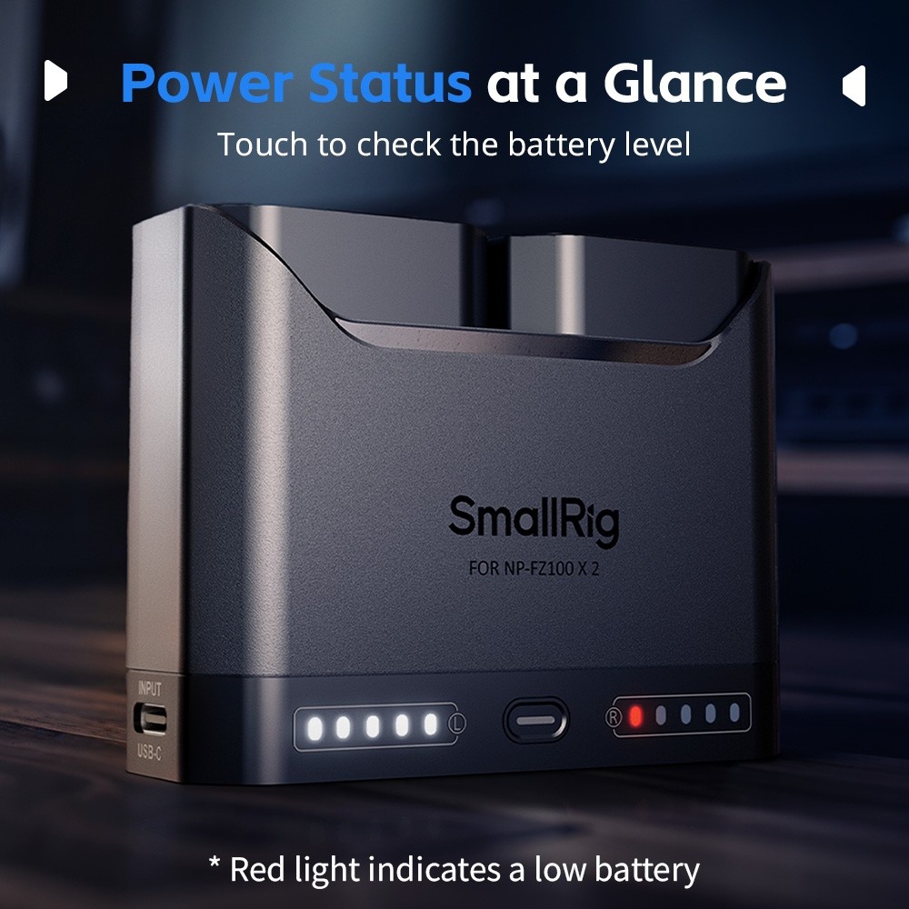 Jeder Ladekanal verfügt über fünf LED-Anzeigen, die den Ladezustand in 20-Prozent-Schritten anzeigen, auch ohne externe Stromversorgung. Eine rote Warnleuchte leuchtet auf, wenn der Ladezustand der Batterie kritisch niedrig ist. Darüber hinaus verfügt das Ladegerät über einen universellen USB-C-Eingangsanschluss und wird mit einem Schnellladekabel geliefert, sodass es mit Wandadaptern, Autoladegeräten und Powerbanks kompatibel ist und vielseitige Lademöglichkeiten bietet.