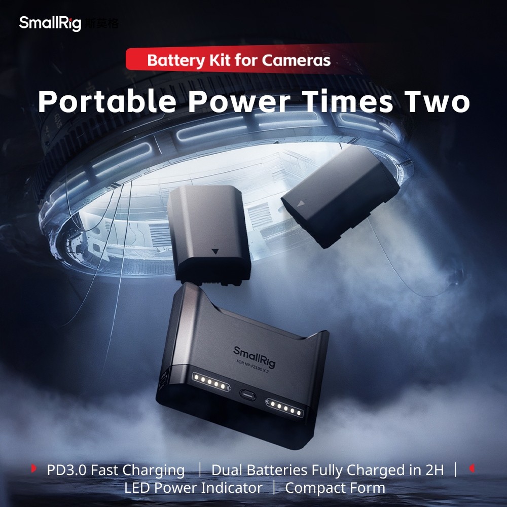 Das SmallRig Turbo-Ladegerät für NP-FW50-Kamerabatterien 5488 enthält zwei Batterien und ein zweikanaliges Schnellladegerät. Mit einem vollständigen Decodierungschip gewährleistet dieses Kit die vollständige Kompatibilität mit Sony NP-FW50-Batterien, wodurch Popup-Warnungen vermieden werden und gleichzeitig die Stromanzeige in der Kamera sowie die Verwendung des Original-Ladegeräts unterstützt werden.