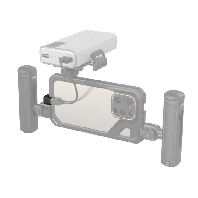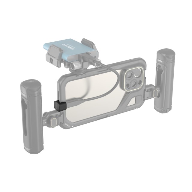 SmallRig Type-C zu Type-C Audio Signal Adapter 4406 ist ein Videokäfig-Zubehör für die iPhone 15 Pro Serie. Der Adapter überträgt das Type-C Signal und die Stromversorgungsschnittstelle des Mobiltelefons auf die Seite des Mobiltelefons, so dass das Mobiltelefon mit dem seitlichen Griff verbunden ist, um Landschaftsaufnahmen zu machen, ohne die Verwendung eines Mikrofons, einer SSD-Festplatte oder der Stromversorgung zu beeinträchtigen.