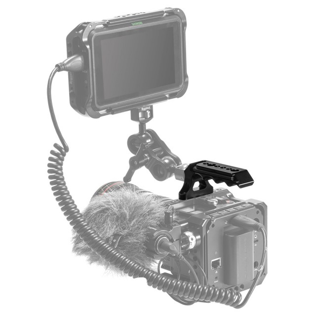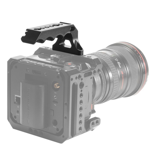 Dieser obere Griff ermöglicht verschiedene Befestigungsmöglichkeiten für Filmkameras. Er ist ergonomisch geformt, um bequem filmen zu können, und an der Seite ist ein schnell zugänglicher Sechskantschlüssel integriert. Darüber hinaus bietet der Arri Lock an der Vorderseite des Griffs die Möglichkeit, verschiedene Monitore und anderes Zubehör fest an der Kamera zu befestigen. Der Griff verfügt über 1/4" und 3/8" Gewinde. Seine Größe ist perfekt für kleine bis mittelgroße Anlagen, um die Anlage kompakt zu halten für Run & Gun-Typ Schießen. Es kann auch für Steadycam- und Gimbal-Arbeiten verwendet werden.