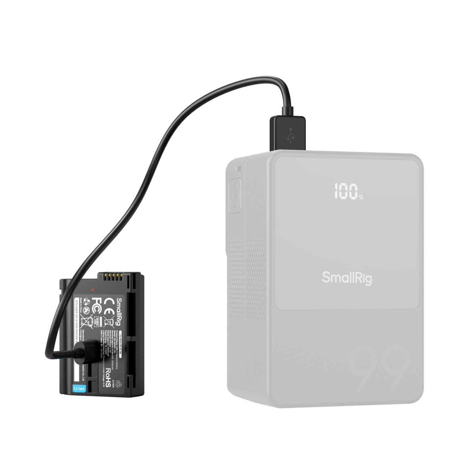 Der integrierte USB-C-Ladeanschluss ermöglicht das direkte Laden über Powerbanks, Wandadapter, Autoladegeräte oder Steckdosenleisten, sodass kein spezielles Ladegerät erforderlich ist. Der Akku unterstützt eine Eingangsleistung von 5 V/2 A und ist in etwa 2,5 Stunden vollständig aufgeladen. Der SmallRig EN-EL15c-Akku ist in einem leichten, feuerfesten Kunststoffgehäuse mit strapazierfähigem Design untergebracht und wird mit einem USB-A-zu-USB-C-Ladekabel und einer Schutzabdeckung für die Kontakte geliefert, wodurch er sich ideal für Reisen, Studio- und Außeneinsätze eignet.