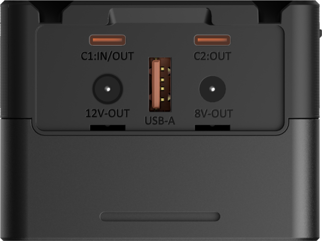 Er bietet vielseitige Schnittstellen, darunter D-Tap, USB-C, USB-A, DC 8V und DC 12V, für effizientes Laden und Betreiben von Kameras, Videokameras, Monitoren, drahtlosen Videosendern, LED-Leuchten, Mobiltelefonen, Laptops und mehr, ohne dass ein V-Mount-Adapter erforderlich ist.