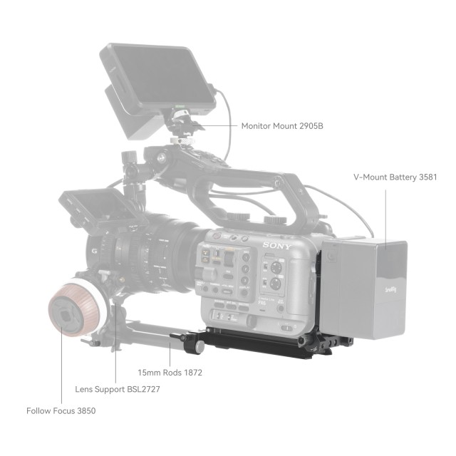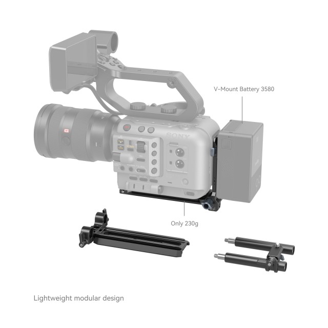 Das SmallRig V-Mount Battery Mount Plate Kit für Kinokameras 4323 ist eine kompakte, leichte und schnelle All-in-One-Lösung zur Erweiterung des V-Mount-Akkus für kleine Kinokameras. Das Kit enthält eine V-Mount-Akkuhalterungsplatte, eine 15-mm-Stabklemme, 15-mm-Stäbe und eine Halterung für den drahtlosen Empfänger. Die V-Mount-Akkumontageplatte hat ein integriertes Design und ist sofort einbaufertig, so dass ein V-Mount-Akku schnell montiert werden kann. Die modular aufgebaute V-Mount-Akkumontageplatte wiegt etwa 300 g und nur 230 g, wenn die untere Manfrotto 501-Schnellwechselplatte entfernt wird, was Handheld-Aufnahmen erleichtert. Die Grundplatte kann um ca. 100 mm gestreckt werden, um das Problem des Schwerpunkts bei schweren Objektiven schnell zu lösen.
