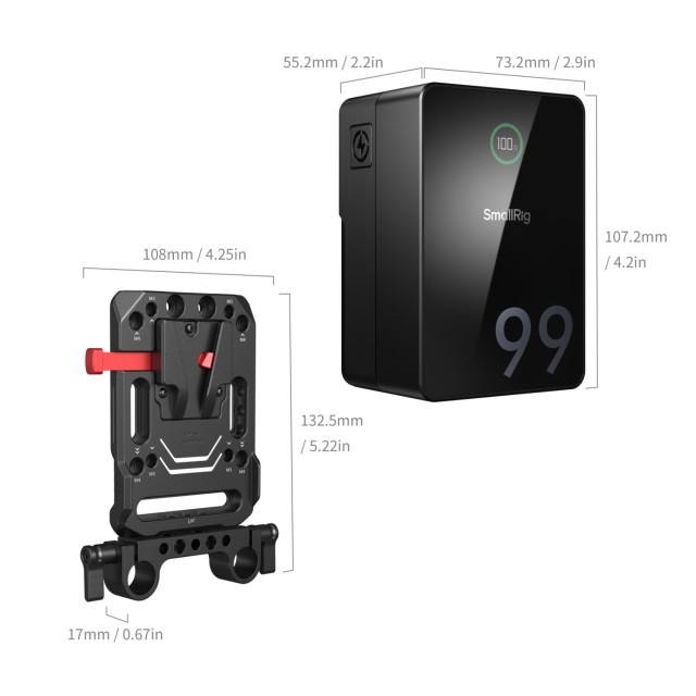 1. Die VB99 Pro Mini-V-Mount-Batterie bietet in Kombination mit der faltbaren V-Mount-Batteriemontageplatte eine kompakte, leichte und effiziente integrierte V-Mount-Batterielösung.