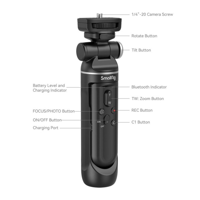 4. Das Stativ ist 15 cm ausziehbar, um 360° schwenkbar und um 180° neigbar und ermöglicht so Aufnahmen aus verschiedenen Blickwinkeln