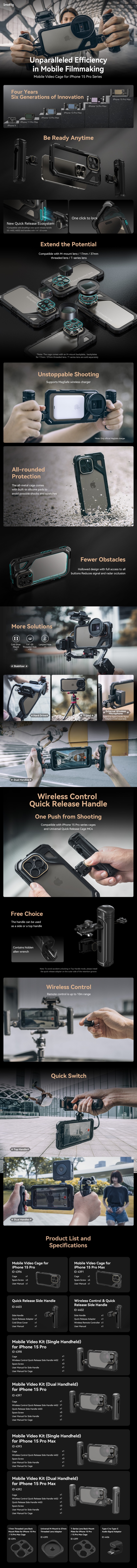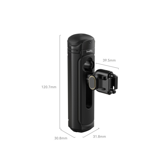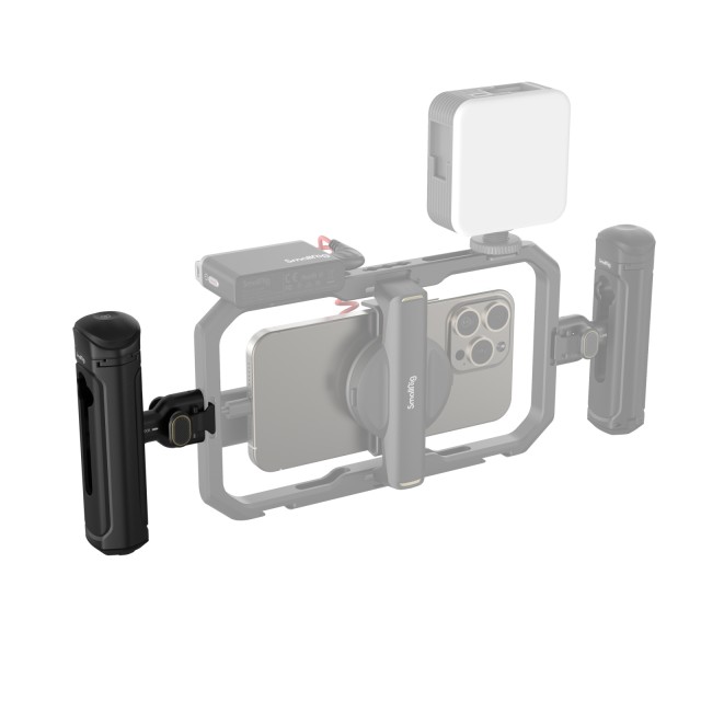 Der SmallRig Wireless Control & Quick Release Side Handle 4402 wird mit einem wiederaufladbaren kabellosen Fernbedienungsmodul geliefert, das mit den Foto- und Videofunktionen der meisten Android / IOS Mobiltelefone kompatibel ist, sowie mit einem Schnellwechseladapter, der den Griff sofort mit SmallRigs neuer Schnellwechselkäfig-Serie verbindet. Er kann bei vertikaler Montage als oberer Griff dienen. An der Oberseite des Griffs befindet sich ein Kaltschuhanschluss für ein Mikrofon oder eine LED-Videoleuchte.