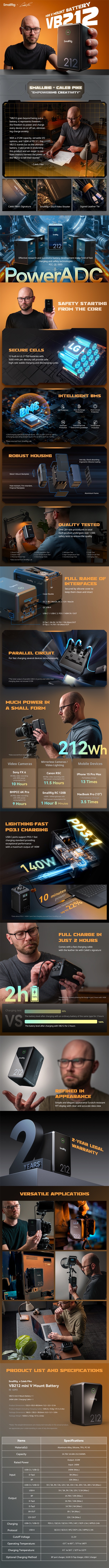 Die SmallRig x Caleb Pike VB212 mini V Mount Battery 4293 verfügt über ein hochintegriertes Design, das die Größe der Batterie reduziert und sie leichter und tragbarer macht. Die Batterie kombiniert Schnellladeprotokoll-Chips, MCU, Spannungssteuerung und BMS-Chips. Sie unterstützt eine breite Palette von Schnellladeprotokollen (PD 3.1 / QC 3.0 / AFC usw.),…