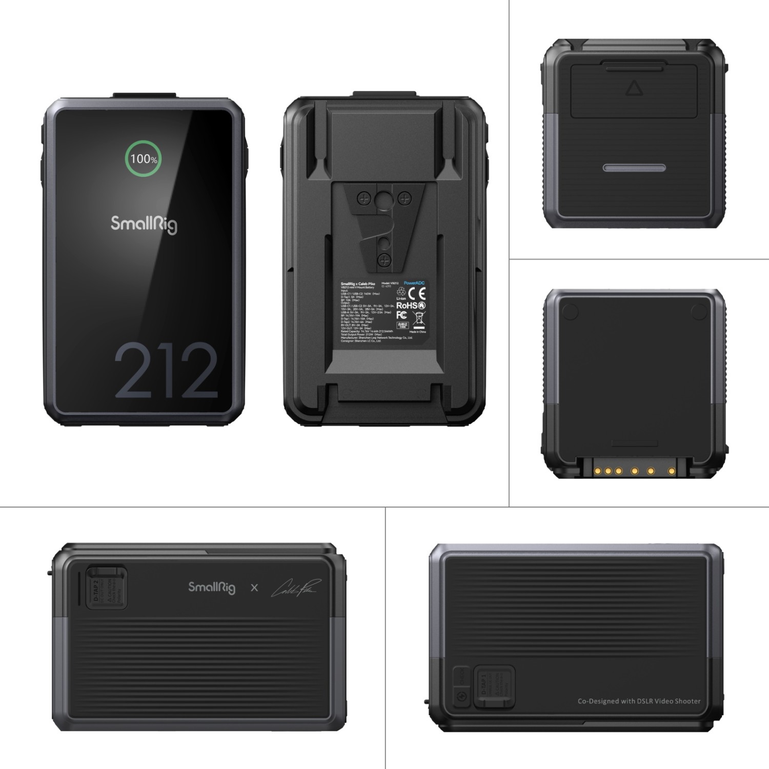 Die SmallRig x Caleb Pike VB212 mini V Mount Battery 4293 verfügt über ein hochintegriertes Design, das die Größe der Batterie reduziert und sie leichter und tragbarer macht. Die Batterie kombiniert Schnellladeprotokoll-Chips, MCU, Spannungssteuerung und BMS-Chips. Sie unterstützt eine breite Palette von Schnellladeprotokollen (PD 3.1 / QC 3.0 / AFC usw.), Zwei-Wege-PD-Schnellladung und -Entladung mit maximal 140 W sowie adaptive Spannungs-/Stromregelung usw. Darüber hinaus sorgt das maßgeschneiderte intelligente BMS-System für einen schnelleren und sichereren Ladevorgang durch Überstrom-, Kurzschluss-, Übertemperatur- und Überspannungsschutz usw. Der Batteriekörper ist mit D-Tap / USB-C / USB-A / DC 8V-OUT / DC12V-OUT / BP-Schnittstellen ausgestattet, die Kamera / Videokamera / Monitor / drahtlosen Bildsender / LED-Videoleuchte / Handy / Laptop usw. aufladen oder mit Strom versorgen können, ohne V-Mount-Platten zu verwenden.