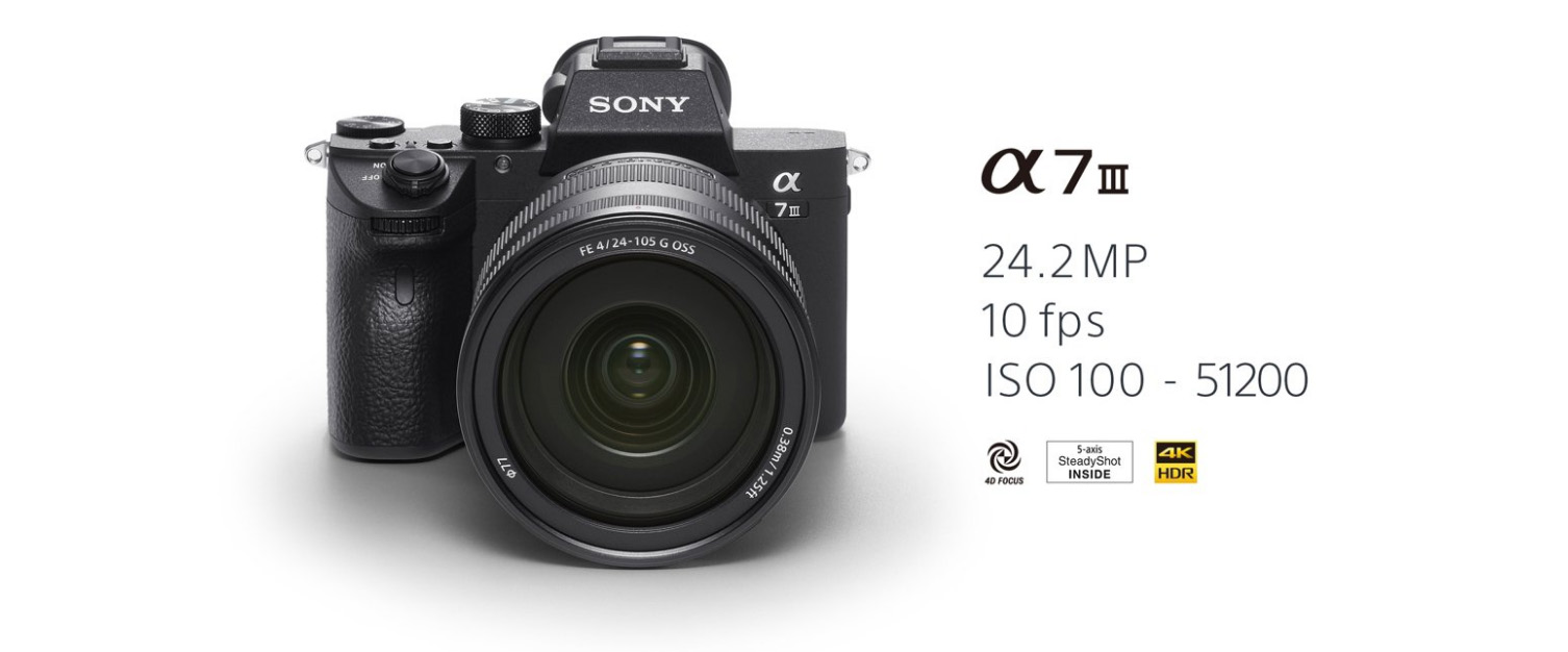 Die Sony Alpha A7 Mark III ist die nächste Generation des Reportagemodells der kompakten Systemkamera (CSC/spiegellos), die sich dank ihrer Schnelligkeit und Bildqualität auch bei sehr hohen Empfindlichkeiten nicht nur für Reportage- und Sportfotografen, sondern auch für Dokumentarfotografen, Porträtfotografen, Landschaftsfotografen und viele andere Amateur- oder Profifotografen eignet. Sie ist mit einem fünfachsig stabilisierten 24,2 MPix FullFrame Sony Exmor R CMOS-Sensor mit einem nativen Empfindlichkeitsbereich von ISO100 - ISO51.200 ausgestattet. Die BIONZ X Bildverarbeitungs-Engine verarbeitet die aufgenommenen Daten mit extremer Geschwindigkeit und ermöglicht Aufnahmen mit einem erweiterten Empfindlichkeitsbereich von ISO50 - ISO204.800, die Verarbeitung von 4K-Videos und schnelle Serienaufnahmen mit bis zu 10 Bildern pro Sekunde in Verbindung mit einem Hybrid-AF-System mit 693 AF-Punkten für die Phasendetektion und 425 AF-Zonen für die Kontrastfokuserkennung. Die Kamera verfügt über eine hervorragende Ergonomie und anpassbare Bedienelemente mit einer Vielzahl von anpassbaren Tasten. Der elektronische 0,5"-OLED-Sucher mit XGA-Auflösung zeigt 100 % Bildabdeckung. Auf der Rückseite befindet sich ein aufklappbares und berührungsempfindliches 3-Zoll-TFT-LCD mit 100 % Sichtfeldabdeckung. Die Konnektivität mit der Umgebung wird durch Wi-Fi (802.11b/g/n) mit NCF-Forum-Technologie (Typ 3), Bluetooth 4.1, SuperSpeed USB3.1 Gen1-Anschluss (Typ-C), Micro-HDMI-Anschluss (Typ-D), Multi-Interface-Schuhbuchse mit Synchro-Anschluss, 3,5-mm-Mikrofonbuchse und 3,5-mm-Kopfhörerbuchse gewährleistet. Das kompakte Magnesium-Kameragehäuse ist sehr robust, leicht und perfekt gegen Staub und ablaufendes Wasser abgedichtet.