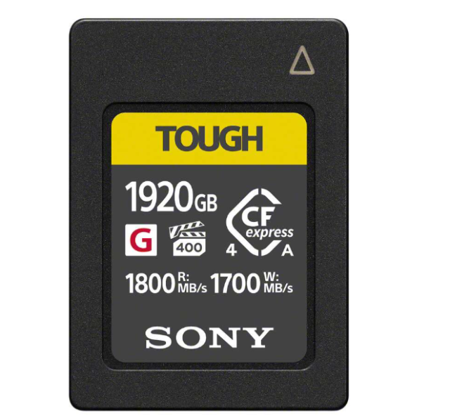 Die Sony Tough CFexpress Typ A-Speicherkarte mit 1920 GB und VPG400 bietet eine ultraschnelle Leistung mit Lesegeschwindigkeiten von bis zu 1800 MB/s und Schreibgeschwindigkeiten von bis zu 1700 MB/s und ist speziell für professionelle 4K/120p-Videoaufnahmen und Workflows in der Hochgeschwindigkeitsfotografie konzipiert.