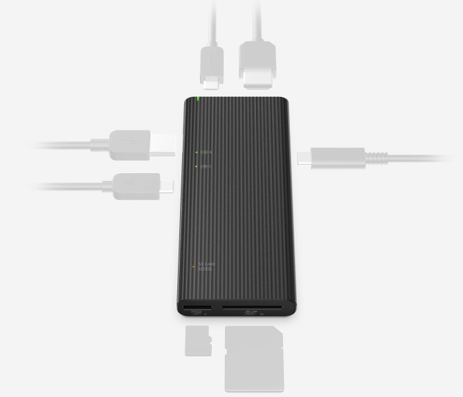 Zusätzlich zu den Kartenlesefunktionen fungiert der MRW-S3 als USB-Hub mit mehreren Anschlüssen, darunter USB-Typ-C- und USB-Typ-A-Anschlüsse. Er unterstützt zudem 4K-HDMI-Ausgabe für externe Displays und ermöglicht das Schnellladen kompatibler Smartphones und Geräte, was ihn zu einem praktischen All-in-One-Zubehör für die Workstation macht.
