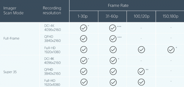XAVC-I QFHD-Modus: 3840 x 2160/59.94P, 50P, 29.97P, 23.98P, 25P