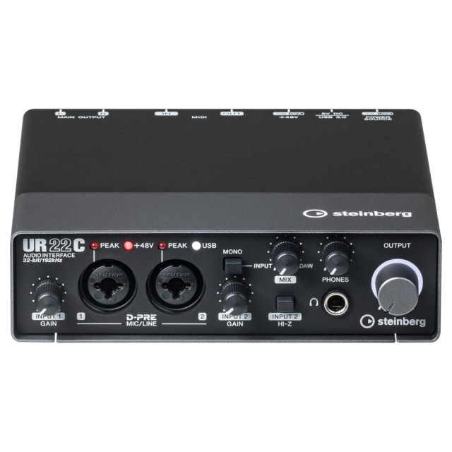 Steinberg UR22C - 2x IN 2x OUT, USB 3.0 Audio Interface mit zwei D-PRE Vorverstärkern und 32-bit/192kHz Audioverarbeitung.