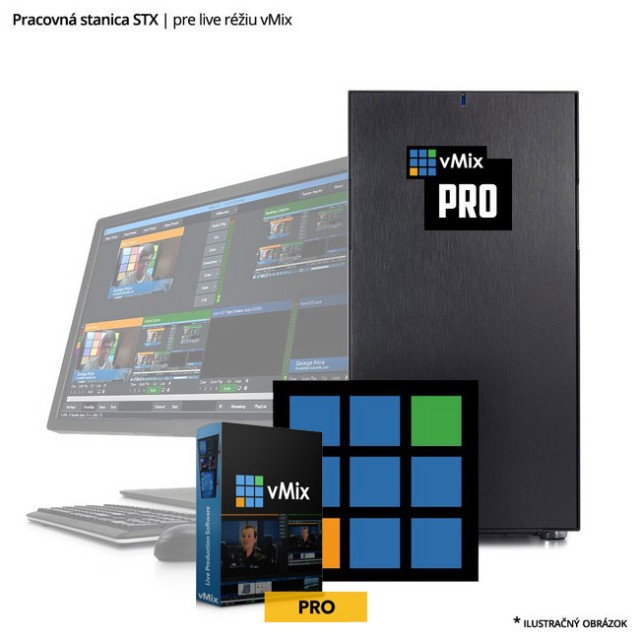 Professionelle STX-Workstation, optimiert für die Ausführung der vMIX-Software. Die vMIX-Software ist nur in den Versionen vMIX HD, vMIX 4K und vMIX PRO enthalten.