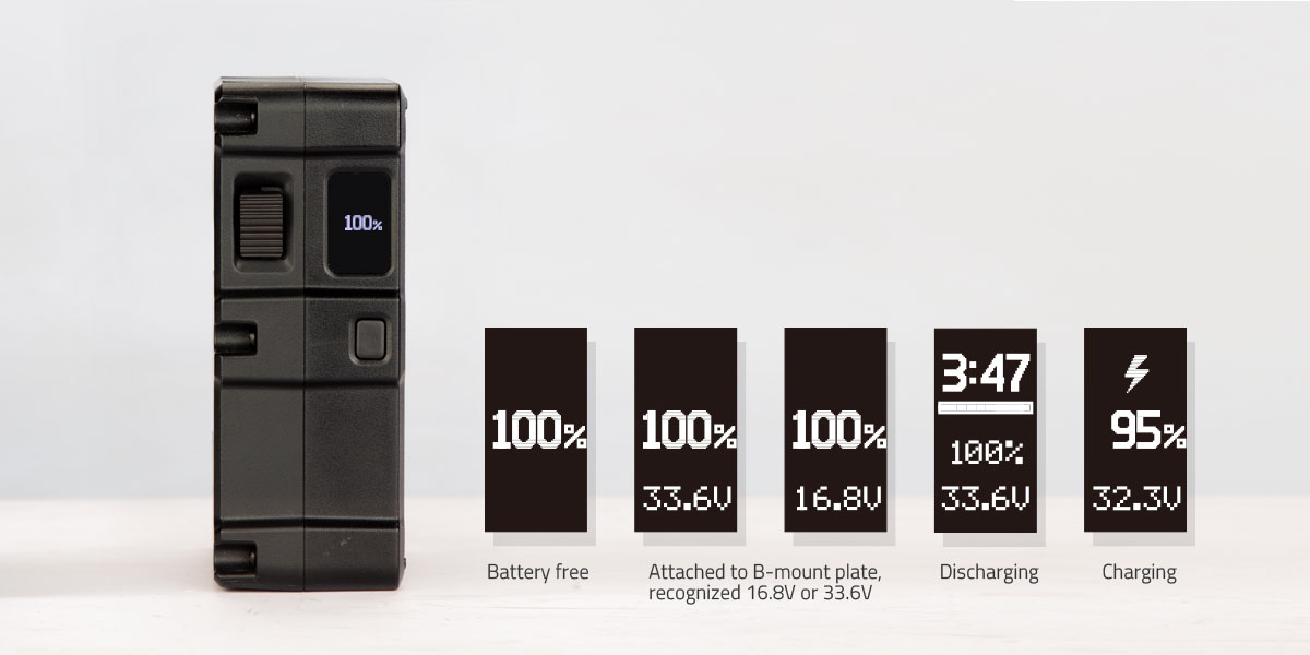 BIVO-200 ist eine 14,4V (10,8-16,8V) und 28,8V (22-33,6V) Bi-Voltage B-Mount-Batterie für ARRI-Kameras und ist mit verschiedenen Kameras und Cinegears mit normaler Spannung kompatibel. Die Batterie erkennt den ID-Pin-Widerstandswert der B-Mount-Platte und gibt dann 14,4V oder 28,8V aus, ohne dass ein Missbrauchsrisiko besteht.