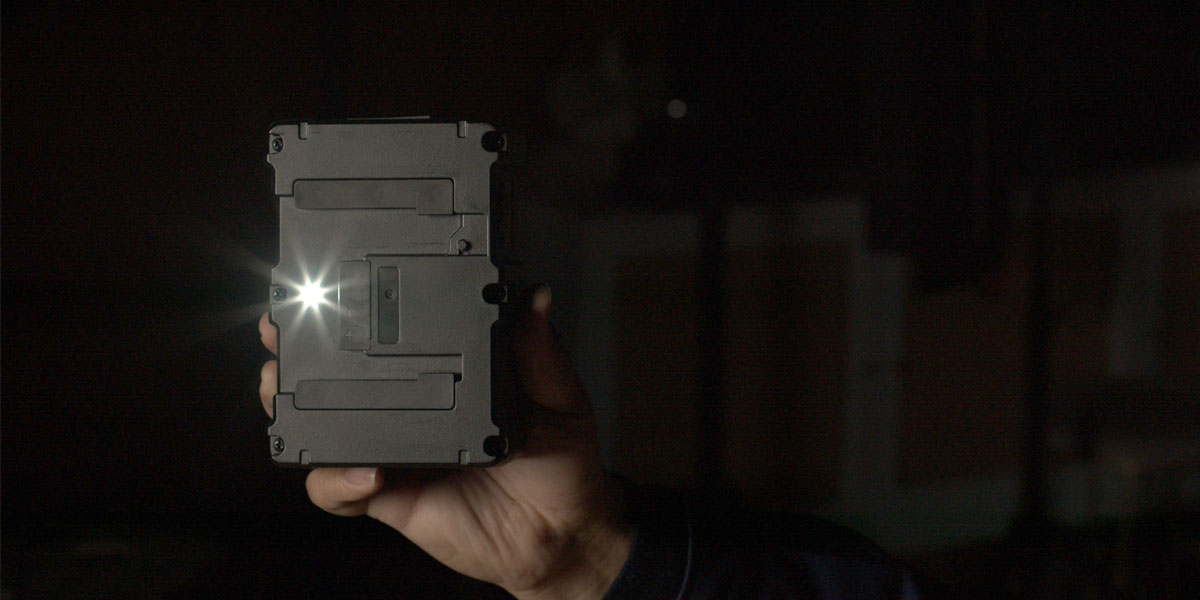 Durch zweimaliges Drücken der Power-Check-Taste wird die LED-Taschenlampe auf der Rückseite des Akkus eingeschaltet, damit Sie die B-Mount-Platte in der dunklen Produktionsumgebung leichter finden können.