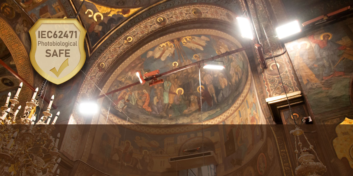 Das Licht wurde gemäß der Norm IEC 62471:2008 getestet und als „ausgenommen – keine photobiologische Gefahr” zertifiziert, ohne Risiko durch ultraviolette Strahlung, hochenergetisches blaues Licht oder Flackern. An bestimmten Orten wie Kirchen, Museen und historischen Gebäuden kann der Einsatz dieser Beleuchtungsvorrichtung das Ausbleichen und Abblättern von Wandmalereien wirksam verhindern und so das kulturelle Erbe schützen.