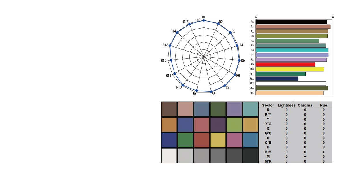 CRI (Color Rendering Index) ist ein Maß für die Fähigkeit einer Lichtquelle, die Farben verschiedener Objekte im Vergleich zu einer natürlichen Lichtquelle originalgetreu wiederzugeben. Und TLCI (Television Lighting Consistency Index) ist speziell für die Farbwiedergabefähigkeit durch Kamerasensoren ausgelegt. Maximalwert 100.