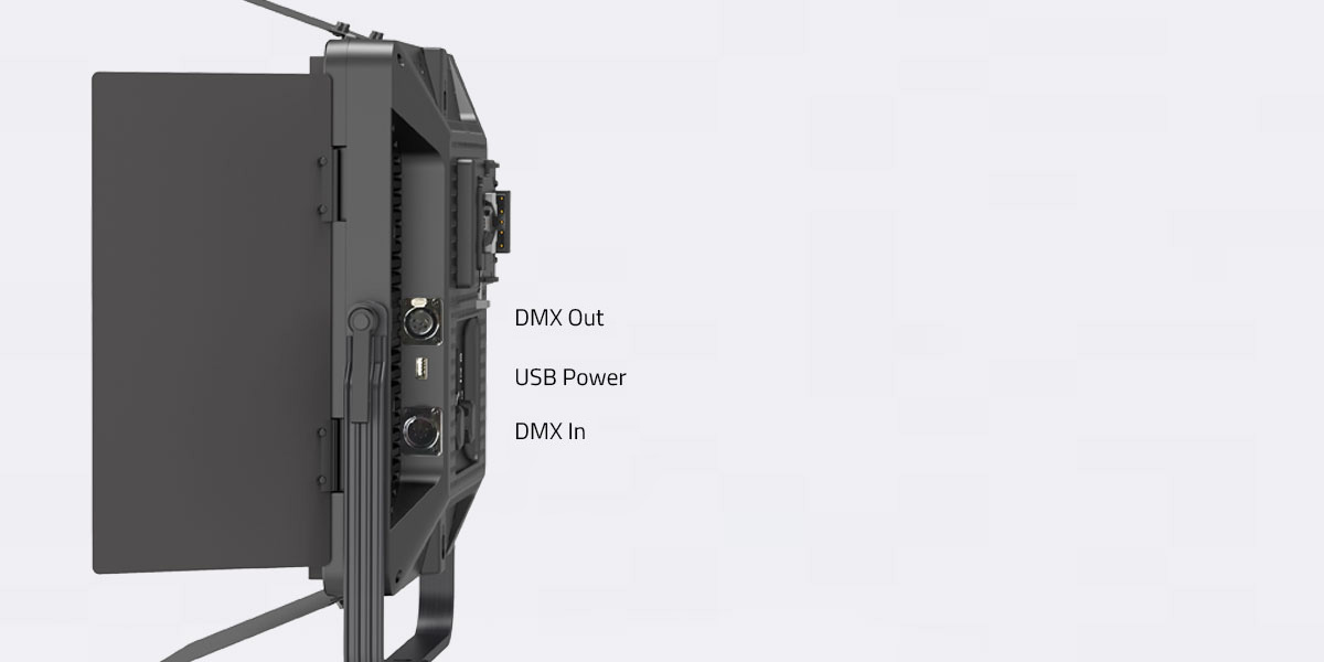 DMX-Adresse: N= Dimmer; N+1= Farbtemperatur Verfügt über eine 5-V-USB-Stromausgangsbuchse. Sie können den SWIT LA-WR8 Pocket Wireless DMX-Controller verwenden und den drahtlosen DMX-Adapter über die integrierte USB-Buchse mit Strom versorgen.