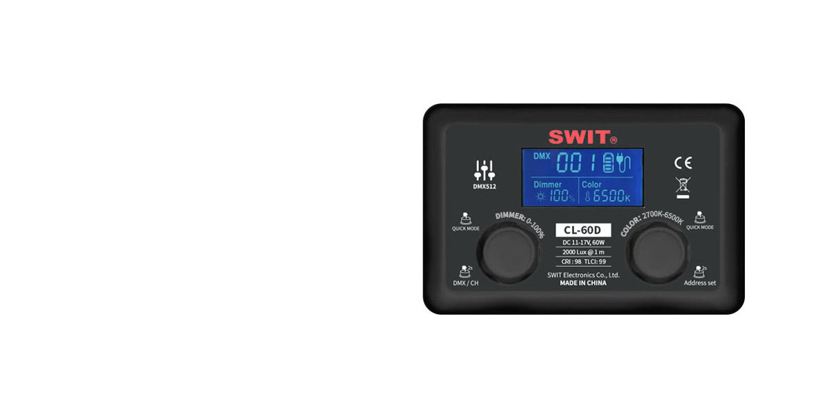 Der CL-60D hat eine Leistung von 60 W, eine Leuchtdichte von 2000 Lux in 1 Meter Entfernung (Mitte) und unterstützt eine digitale PWM-Dimmung von 0 bis 100 %, die sanft und flimmerfrei ist.