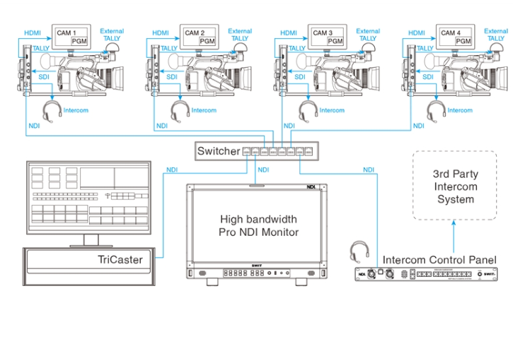 Das SWIT ET-N80 NDI® EFP Intercom Control Panel wurde für die nahtlose Kommunikation zwischen Regisseur und Kamera in professionellen IP-basierten Live-Produktionsumgebungen entwickelt. Als Teil des SWIT NDI® EFP Multi-Kamera-Produktionssystems wird das ET-N80 über ein einziges RJ45-LAN-Kabel direkt mit dem NDI®-Netzwerk verbunden, was eine effiziente Einrichtung und optimierte Arbeitsabläufe ermöglicht.