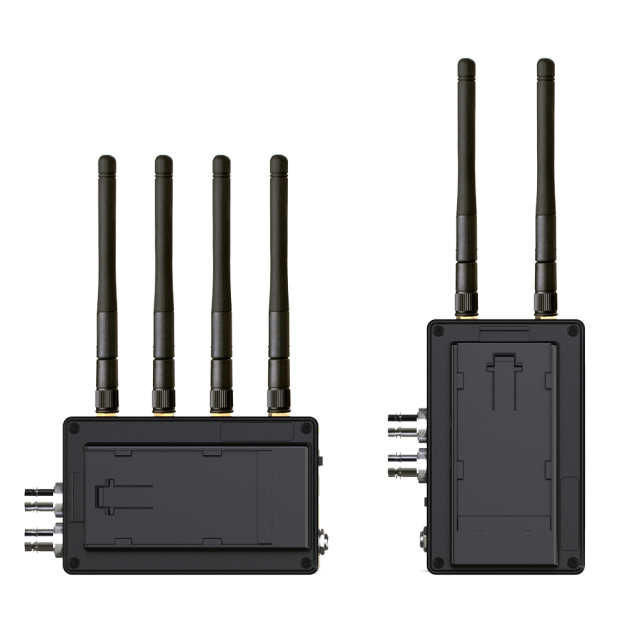 Sender- und Empfängerset zur drahtlosen Übertragung von bis zu 1080p60 3G-SDI/HDMI-Video (plus 2 Audiokanäle) über eine Entfernung von ca. 600 m (Sichtverbindung) im 5,1 - 5,9 GHz-Band inklusive DFS-Unterstützung.