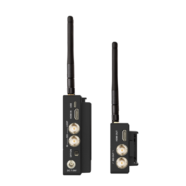 Der Sender verfügt über 1x 3G/HD-SDI und 1x HDMI 1.3 Eingänge, 1x 3G/HD-SDI Ausgang, der Empfänger über 2x 3G/HD-SDI und 1x HDMI 1.3 Ausgänge. Das gesamte System unterstützt die Koexistenz von 3-4 Paaren an einem Arbeitsplatz und auch Multicasting für den Empfang von bis zu vier Empfängern von einem einzigen Sender. Selbstverständlich gibt es eine perfekt ablesbare OLED-Statusanzeige, AES128-Verschlüsselung, FW-Update über Micro-USB-Schnittstelle oder Stromversorgung über (optionale) NP-F-Batterien oder 7-34V= externe Netzteile (Verbrauch unter 8 W; Netzteil im Lieferumfang).