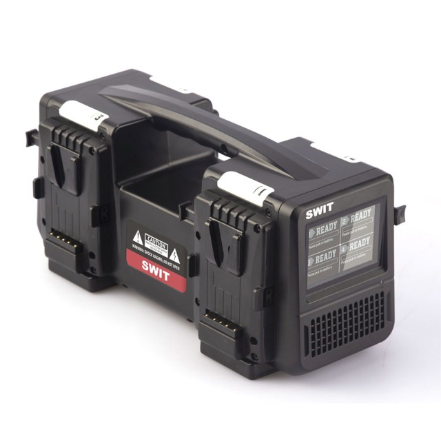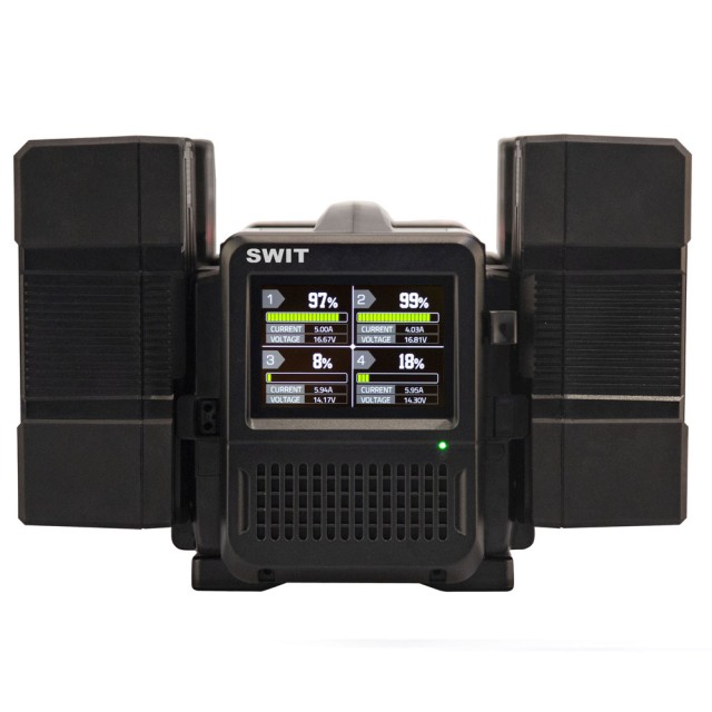Das SWIT PC-P461S ist ein 4-Kanal 4x100W Super Fast V-Mount-Ladegerät mit LCD-Infodisplay für den individuellen Batterieladestatus.