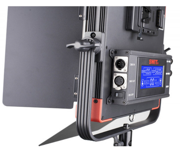 Der S-2430C wird mit 12–17 V Gleichstrom betrieben und unterstützt entweder einen V-Mount-Akku oder den mitgelieferten AC-DC-Adapter mit V-förmiger Halterung. Das Panel verfügt über ein Metallgehäuse mit einer 4-teiligen Lichtklappe für eine präzise Lichtformung und eine U-förmige Halterung mit mitgelieferten Stahlsicherheitsseilen für die sichere Installation auf einem Stativ oder an der Decke.