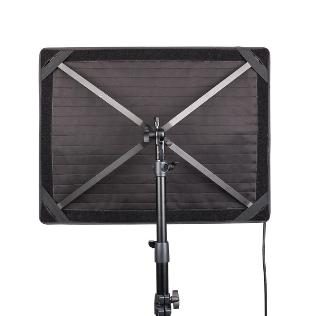 Im Lieferumfang des S-2610 ist ein faltbarer X-Bügel enthalten, mit dem die Leuchte auf einem Stativ befestigt werden kann. Unterstützt 0°-180° Neigungswinkel.