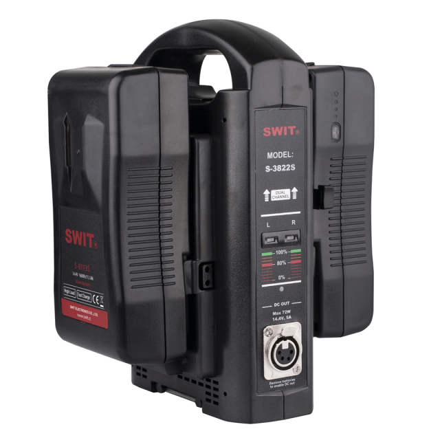 SWIT S-3822S ist ein 2-Kanal-Simultan-Ladegerät für V-Mount-Akkus