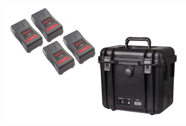 Das SWIT S-4020 KIT ist eine vielseitige Stromversorgungslösung für die professionelle Video- und Filmproduktion, die die 12/24-V-Stromversorgung S-4020 mit vier SWIT S-8180S 220-Wh-Hochleistungs-V-Mount-Akkus kombiniert. Die Station kann 1–4 V-Mount-Akkus aufnehmen, bietet eine Gesamtkapazität von 880 Wh und liefert stabile Energie für Cine-Kameras, LED-Leuchten und andere Geräte am Set mit hohem Energieverbrauch.