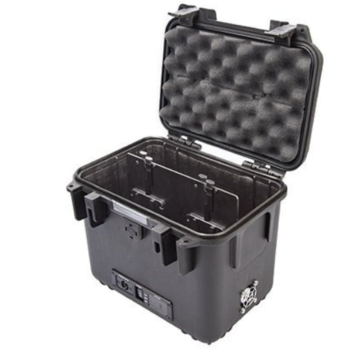 Die S-4040-Box wurde für maximale Laufzeit und Ausgangsstabilität entwickelt und liefert geregelte 24 V Gleichstrom (bis zu 10 A, 240 W) über einen 4-poligen XLR-Ausgang und geregelte 48 V Gleichstrom (bis zu 10 A, 480 W) über einen 3-poligen XLR-Ausgang. Der 48-V-Ausgang erfordert vier identische Batterien für den Betrieb, während der 24-V-Ausgang mit einer beliebigen Anzahl installierter Batterien funktioniert. Eine LED-Anzeige zeigt die durchschnittliche Spannung der installierten Batterien an und liefert Echtzeit-Informationen zum Batteriestatus sowie Warnmeldungen, wenn ein Ladevorgang oder ein Austausch erforderlich ist.